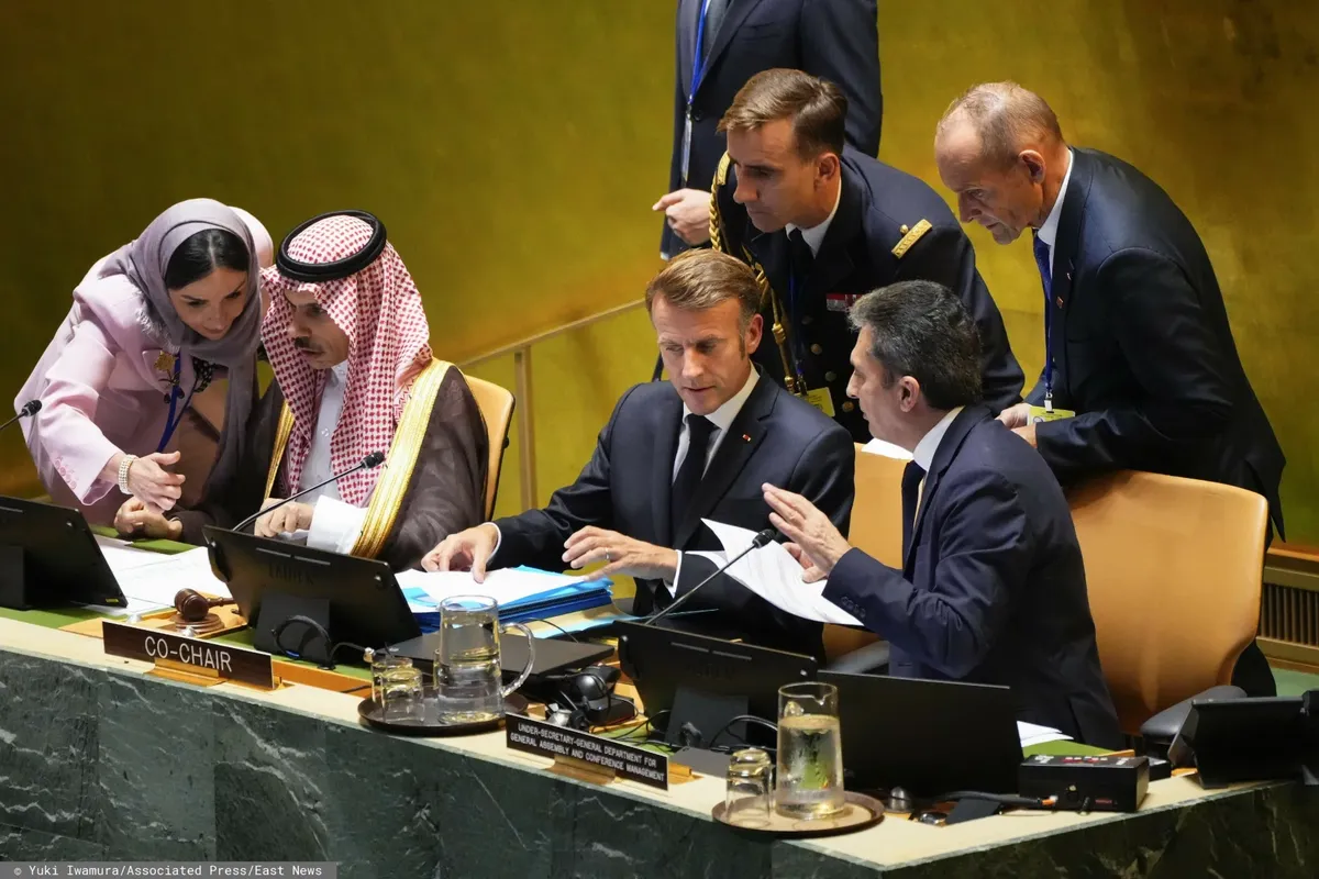Среди не признавших, добавлю я от себя, — та самая Саудовская Аравия, чей лидер не приехал в Нью-Йорк, сделав, таким образом, в глазах многих Эмманюэля Макрона главным символом мероприятия.