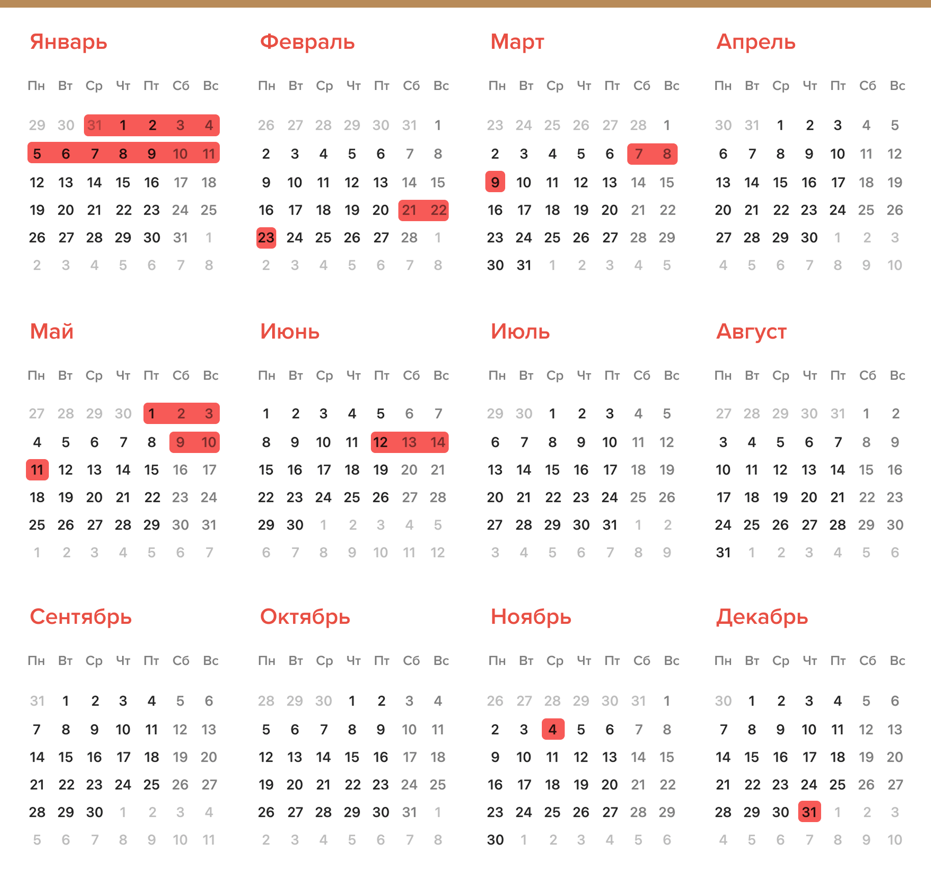 Премьер-министр РФ Михаил Мишустин подписал постановление о праздничных и выходных днях в 2026 году. Согласно производственному календарю, в России будут рекордно длинные новогодние каникулы — они продлятся 12 дней, с 31 декабря 2025 года по 11 января 2026-го. Предыдущий рекорд установили в 2015 году, когда россияне отдыхали 11 дней подряд (при этом тогда в дни каникул не включали 31 декабря). В следующие годы, согласно открытым данным, новогодние каникулы продолжались от восьми до десяти дней, а 31 декабря часто делали укороченным рабочим днем. В 2026 году жители России также будут по три дня подряд отдыхать в феврале (с 21 по 23 февраля), в марте (с 7 по 9 марта), дважды в мае (с 1 по 3 мая и с 9 по 11 мая), в июне (с 12 по 14 июня). Кроме того, 4 ноября и 31 декабря также будут праздничными днями. При этом, как ранее сообщили в Минтруда, в России в 2026 году не будет ни одной рабочей субботы.