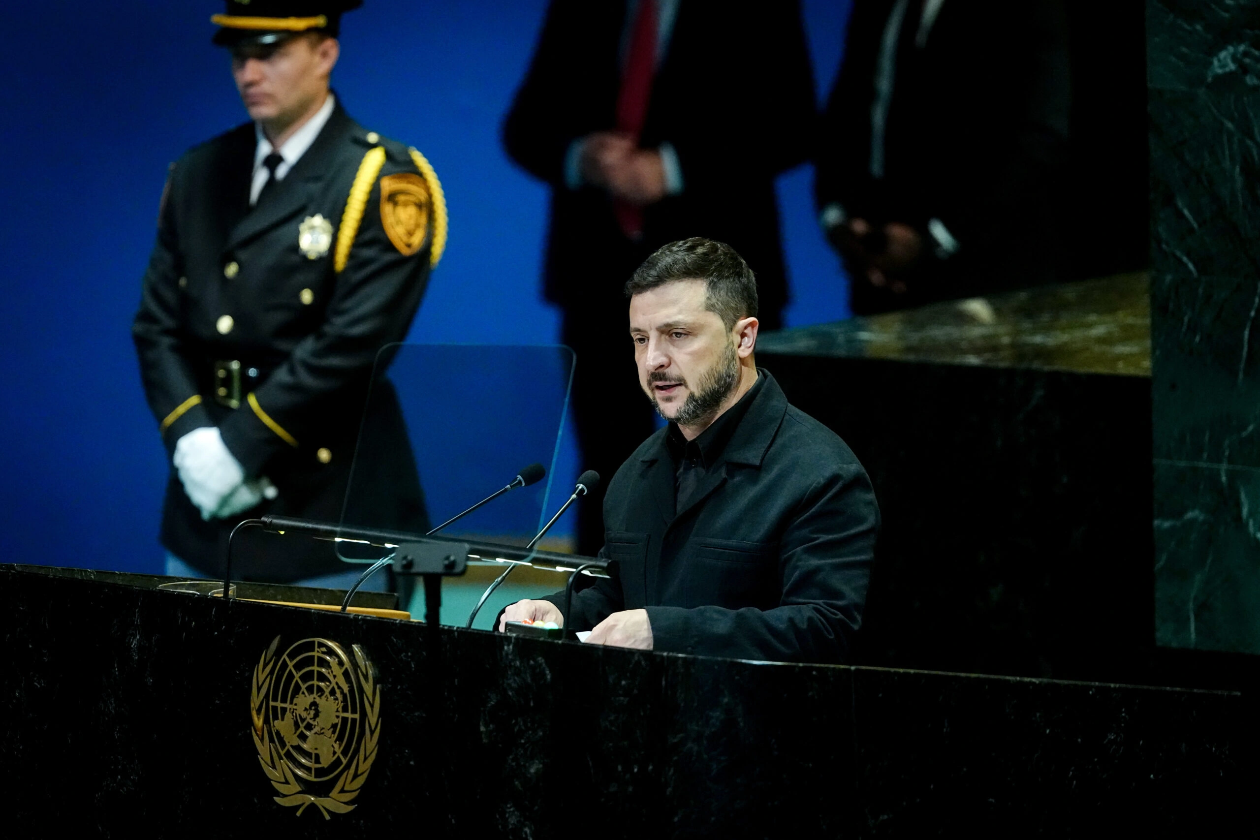 Фото: Владимир Зеленский выступает на Генассамблее ООН, Нью-Йорк, 24 сентября 2025 года. Kay Nietfeld/dpa via Reuters Connect