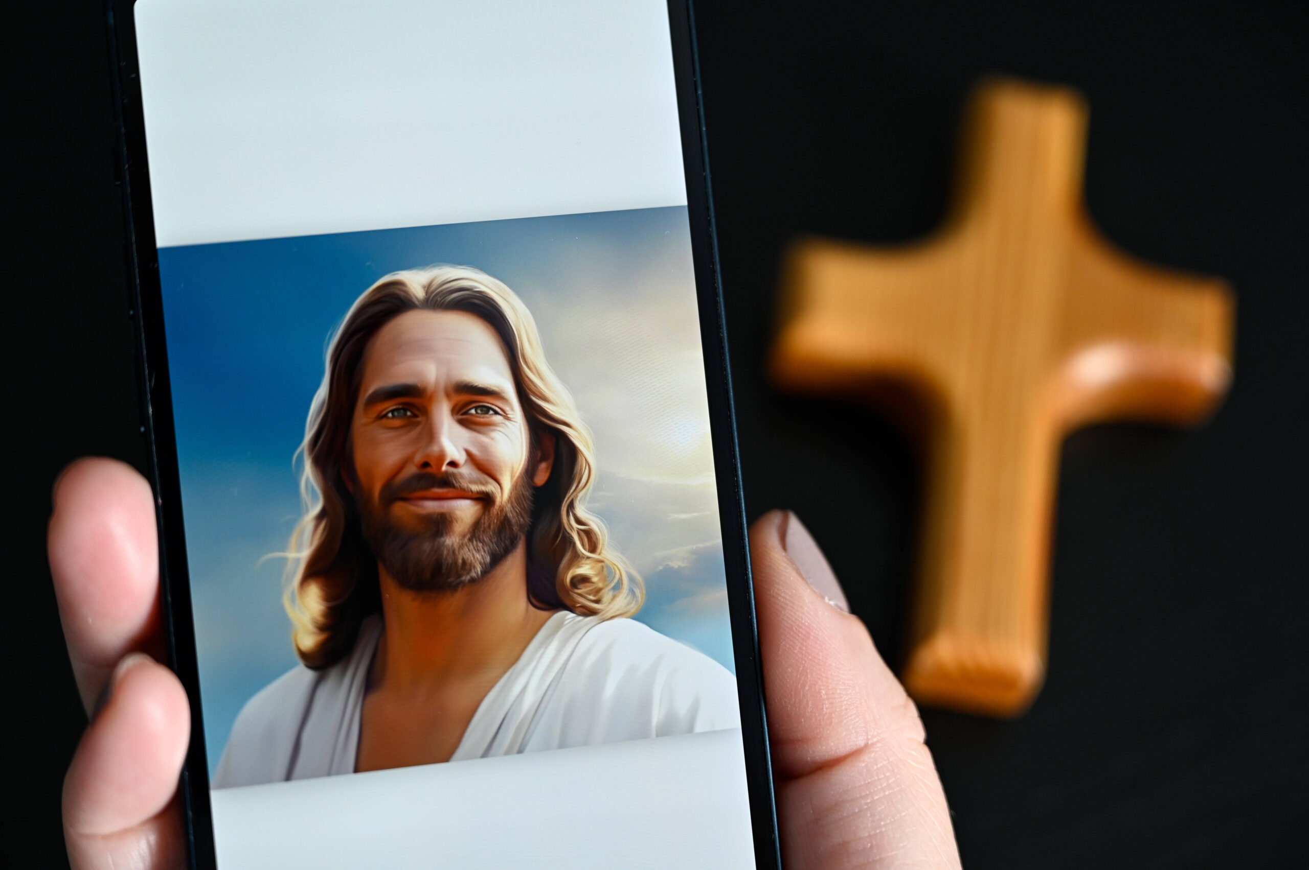 Фото: Приложение Text with Jesus от технологической компании Catloaf Software на смартфоне. Иллюстративное изображение. IMAGO/epd via Reuters Connect