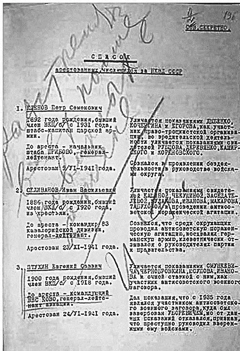 В тексте «Записки» начальника Следственной части по особо важным делам НКВД печально знаменитого Льва Влодзимерского фамилии Сталина и наркома вооружения Ванникова вписаны им от руки. Скоро, правда, Ванникова арестуют и его фамилию можно будет не маскировать.