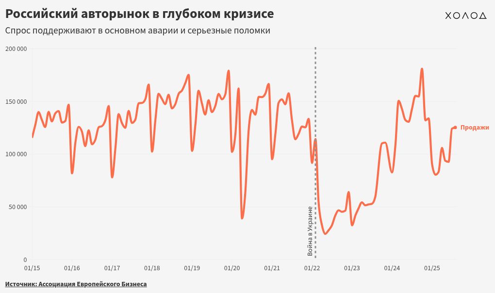 По прогнозу аудиторско-консалтинговой компании «Технологии Доверия», уже в 2026 году рынок должен был восстановиться и выйти на уровень довоенных продаж. Но пока говорить об этом преждевременно — уже в январе 2025 года продажи вновь начали стремительно падать.