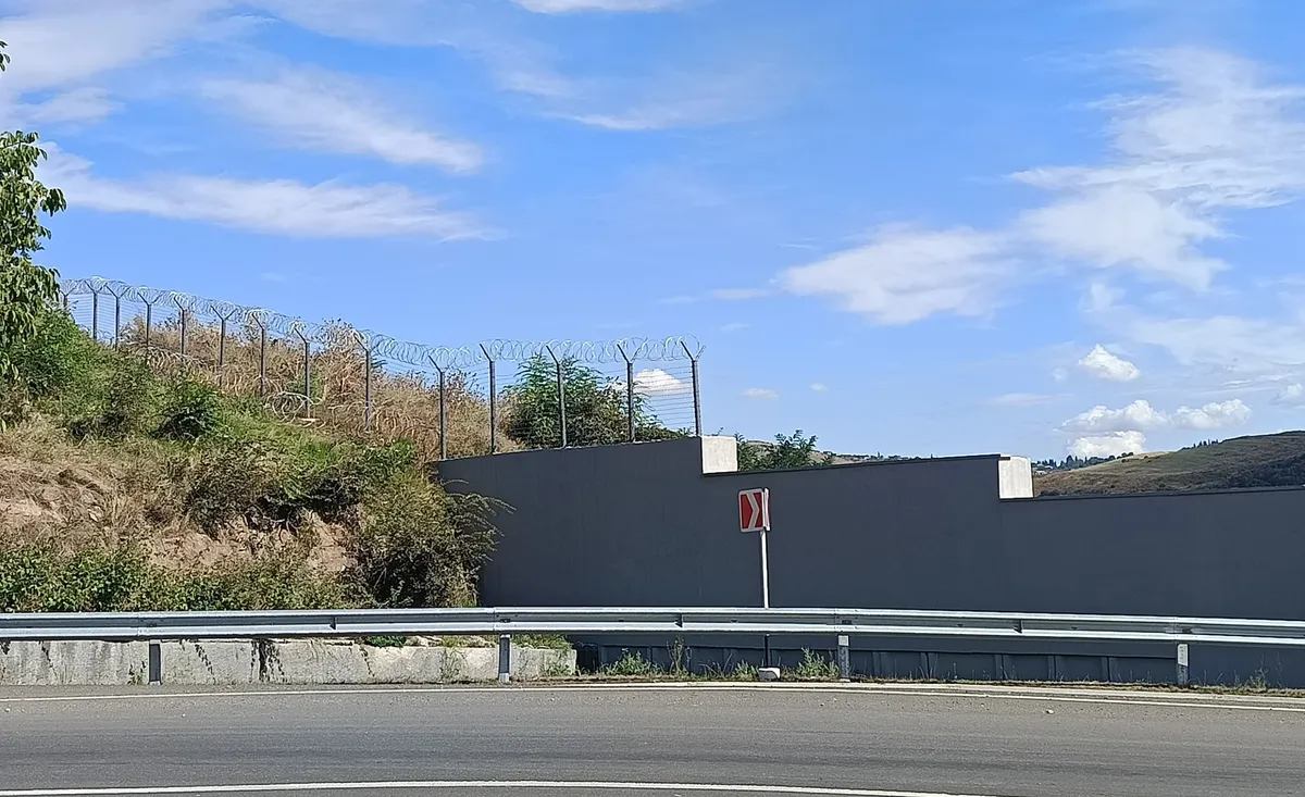 Честно говоря, в ожидании увидеть блокпосты, проверку на въезде, какие-то вообще признаки режимного объекта я попросту проехал мимо, и лишь спустя несколько минут навигатор, да и придорожные указатели подсказали мне разворачиваться. Ничего из вышеописанного и режимного, конечно же, здесь не было. О том, что это село теперь на самой границе, весьма красноречиво говорил только крепкий массивный забор вдоль дороги, над которым была протянута колючая проволока. Это и оказалась та самая видимая часть новой границы. На повороте наверх, в горы, даже видно, как забор проходит в нескольких сантиметрах от стоящего тут дома. Не могу себе представить, что чувствует хозяин дома, зная, что за стеной у него не просто улица, а территория другого государства, которое до недавних пор считалось вражеским.