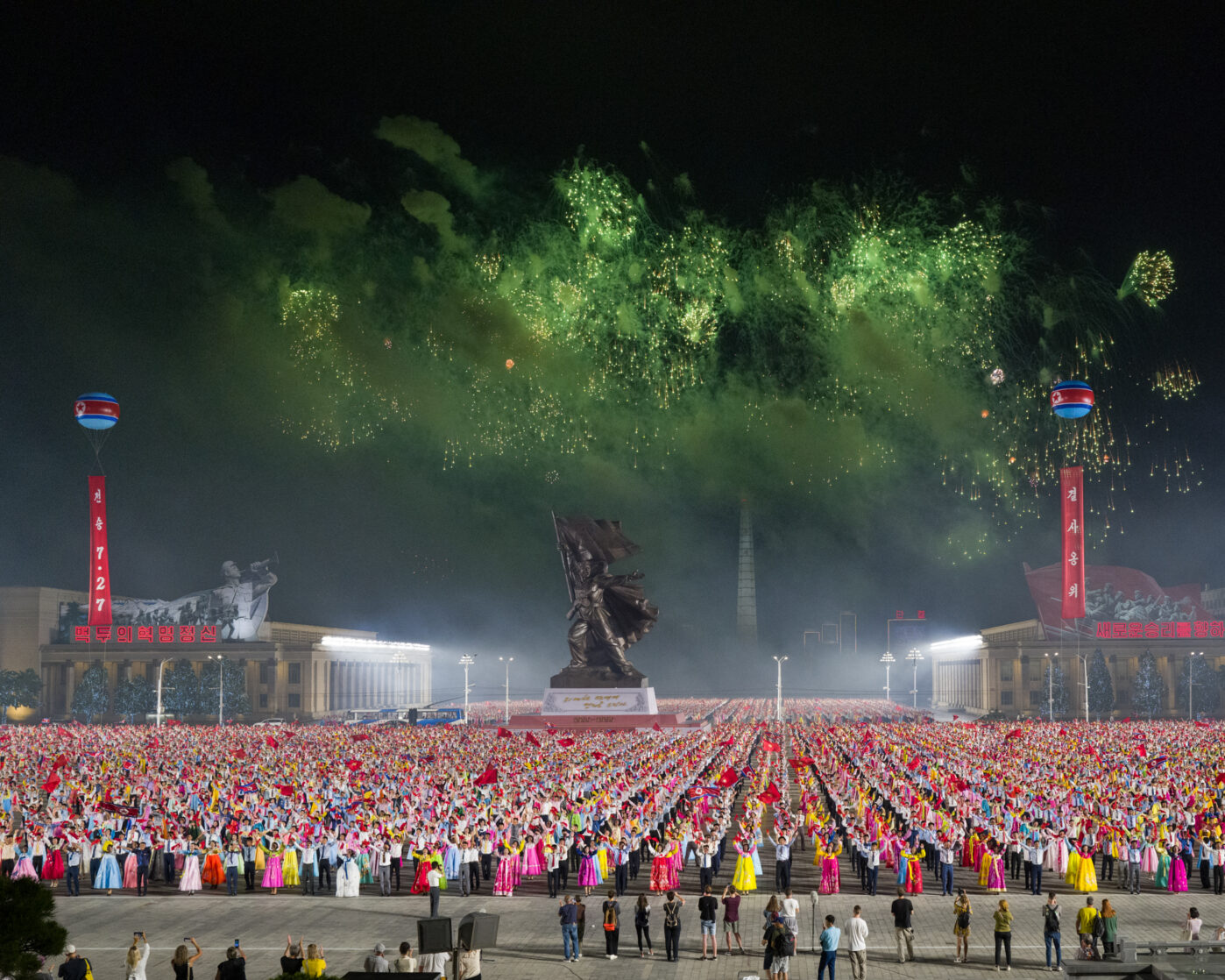 В Пхеньяне все шло по классической схеме: цирк, центральная площадь Ким Ир Сена, Триумфальная арка, Башня идей Чучхе, монумент Мансудэ с памятниками вождей, музей Победы. Самое интересное — метро, там мы были ближе всего к людям, и танец студентов в честь дня победы на центральной площади. Это было действительно впечатляюще — несколько тысяч молодых парней и девушек в национальных костюмах синхронно выполняли движения, водили хороводы, прыгали и ликовали под многочисленные залпы салюта. Удивительно, что среди зрителей были только пять групп российских туристов и несколько северокорейцев.
