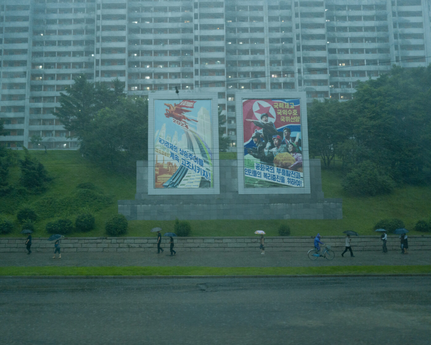 КНДР, само ее пространство, атмосфера вокруг очень меня удивили. Иногда у меня возникало ощущение, что мы перенеслись на машине времени в другую эпоху. Была иллюзия, что все, что мы видим — это огромные декорации, а люди из специально набранной массовки, настолько само течение жизни необычно.