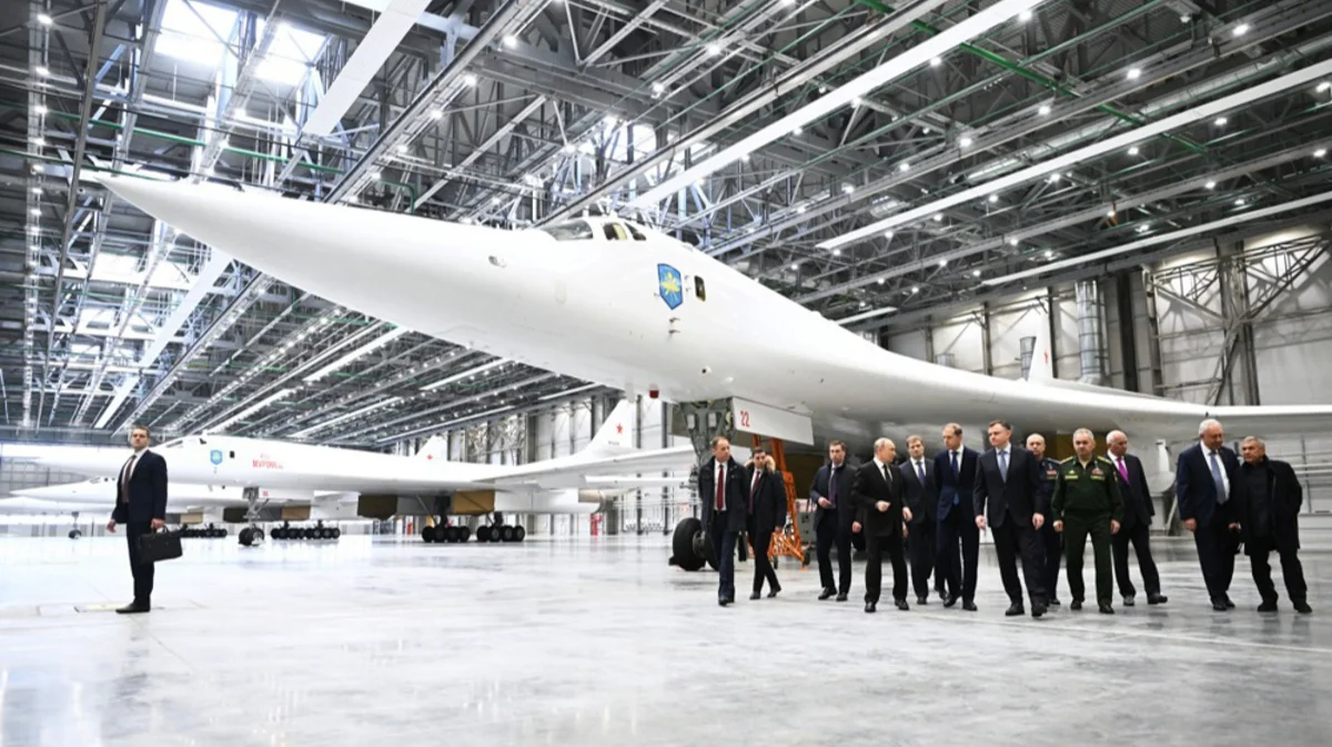 Cверхзвуковой стратегический ракетоносец-бомбардировщик, разработанный в 1970–1980-х годах. Серийное производство самолёта было прекращено в 1990-х годах, однако в России ведутся работы по возобновлению производства. Фото: Кристина Кормилицина / Kremlin pool / EPA