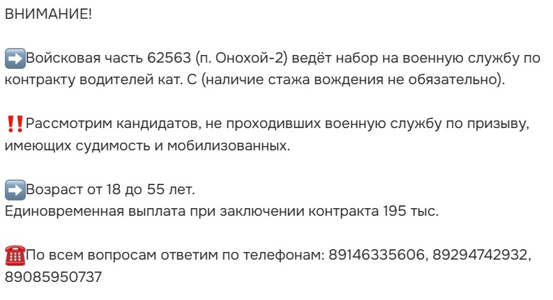 – Да, такой же дуболом, как остальные, – комментирует итоги другой житель Онохоя Баир (имя изменено для безопасности собеседника). – Ну, в лучшем случае не сразу начнет [воровать]. Но, может, и вообще не допустят – он военный, могут силком отправить на "СВО", а полномочия заставить ей [Павловой] передать. Посмотрим. А даже если захочет, что он может сделать? Совхоз у нас сто лет уже не работает, на ж/д – еще попробуй устройся, молочка – один маргарин выпускает, лесопилки – ну, копейки платят, конечно, в черную нанимают. Что он нового предложить может? Идите вербоваться? У нас и так куда ни глянь – листовки от части Онохойской: рассмотрим водителей без опыта вождения, тех, кто даже в армии не был, судимых, единовременная выплата была в 195 тысяч, сейчас уже – 210! Все, кто хотел – уже ушли. За деньги, конечно. Смотри объявление (Баир зачитывает пост в паблике "Анонимный Онохой") – 40 тысяч в месяц продавцом. Квартиру снять с мебелью здесь стоит 19 тысяч. Мужик прокормит семью на это, если только на жилье половина зарплаты идет?! Поэтому мы план и перевыполнили [по числу погибших]. Два дня назад только похороны опять были, у Хафизовых.