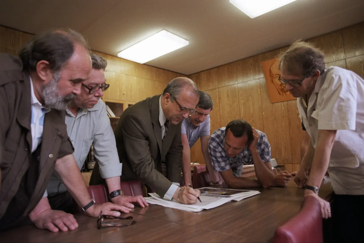 Я часто вспоминаю ту редакцию. Она была исключительно старомодной. Не было, разумеется, никаких компьютеров, техреды длинными ножницами вырезали, а потом выклеивали каждый разворот, грохотало в шесть рук машбюро, корректоры вычитывали «синьки», художники тушью и красками рисовали большие иллюстрации, фотографы проявляли снимки в лаборатории, в жутко неудобном здании без кондиционеров на Бумажном летом было адски жарко, а зимой дико холодно. В актовом зале, где проходили летучки и где я слушал таких людей, «делавших доклад», как Новодворская, Синявский и Розанова, Мамонов, Леша Дидуров, так вот, в этом зале, когда я пришел в «Огонек», еще висел портрет Ленина.