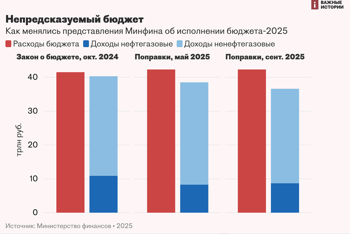 Беда пришла откуда не ждали. В 2024 году правительство справилось с ростом расходов почти на четверть (с 32,4 до 40,2 трлн рублей), а в 2025-м едва сдюжило увеличить траты на 2 трлн, до 42,3 трлн рублей. Что произошло?