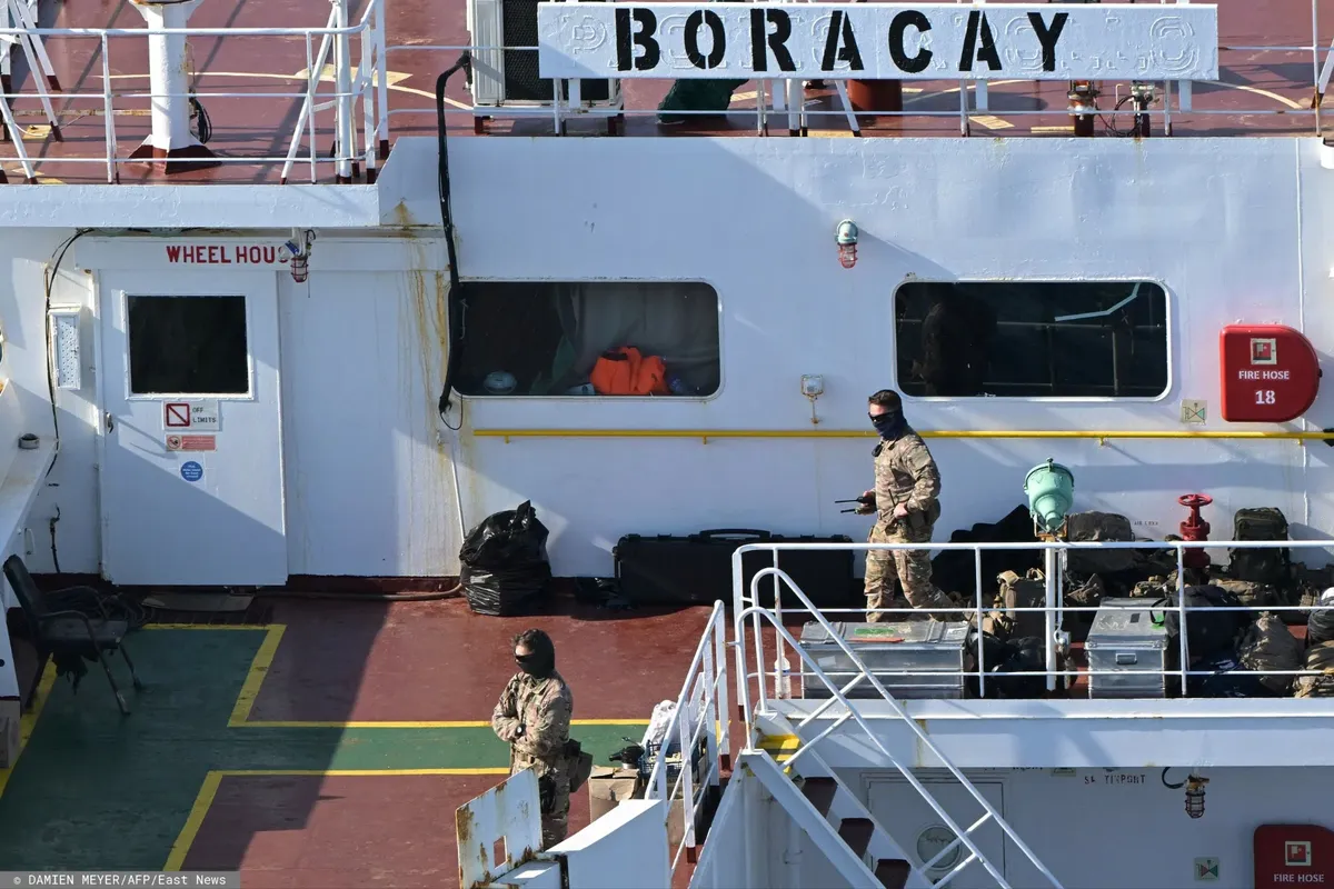 По данным военного источника AFP, оно было задержано в прошлую субботу, 27 сентября (незадолго до полуночи), и на его борт «поднялась группа специалистов». «Оперативная группа была вынуждена применить военную силу», чтобы подняться на борт Boracay, сообщил источник Libération: «Затем корабль был введен в территориальные воды Франции, то есть ближе чем 12 миль от побережья, рядом с морской ветряной электростанцией Сен-Назера, чтобы не мешать судоходству».