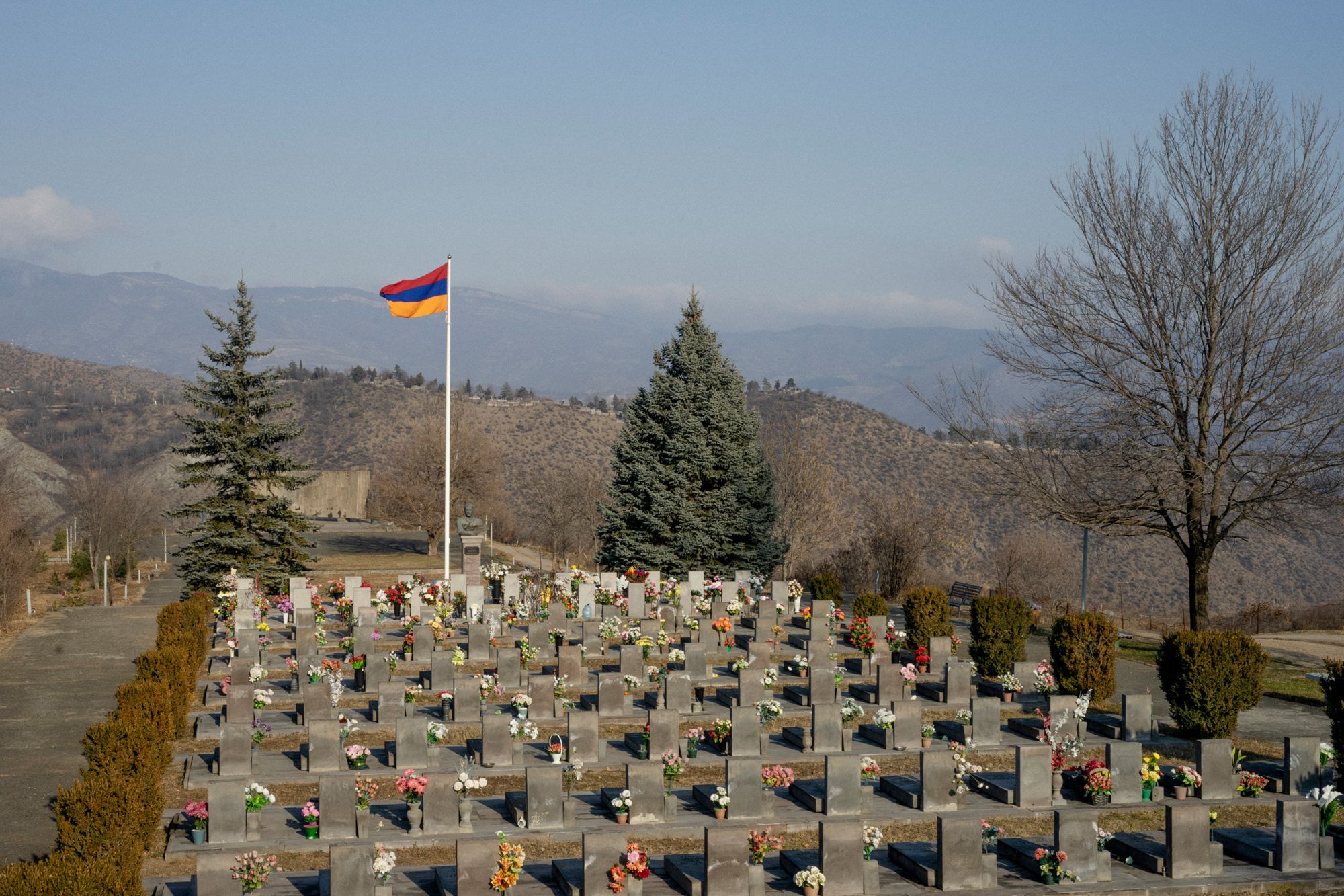 Многие армянские семьи столкнулись с потерей близких. Война с Азербайджаном в 2020 году стала последним крупным конфликтом, унесшим жизни нескольких тысяч армянских солдат. Друзья и родственники часто посещают могилы тех, кого они потеряли, и украшают их цветами. В Раздане я встретил группу женщин, каждая из которых пережила смерть мужа или сына. Гибель мужа, кроме всего прочего, означает необходимость нести на себе всю тяжесть домашнего хозяйства и искать альтернативные источники дохода.