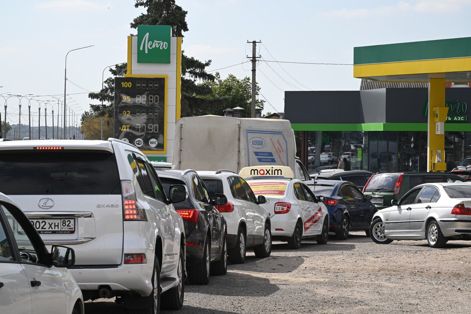 В России — топливный кризис: в сезон пикового потребления производство бензина сократилось из-за украинских ударов по НПЗ, цены поползли вверх. Некоторые заправки, не имея возможности повысить цены из-за антимонопольных ограничений, закрываются. В аннексированном Крыму власти установили потолок цен и ограничили объемы продаж бензина — не более 20 литров за раз. Вот как все это выглядит.