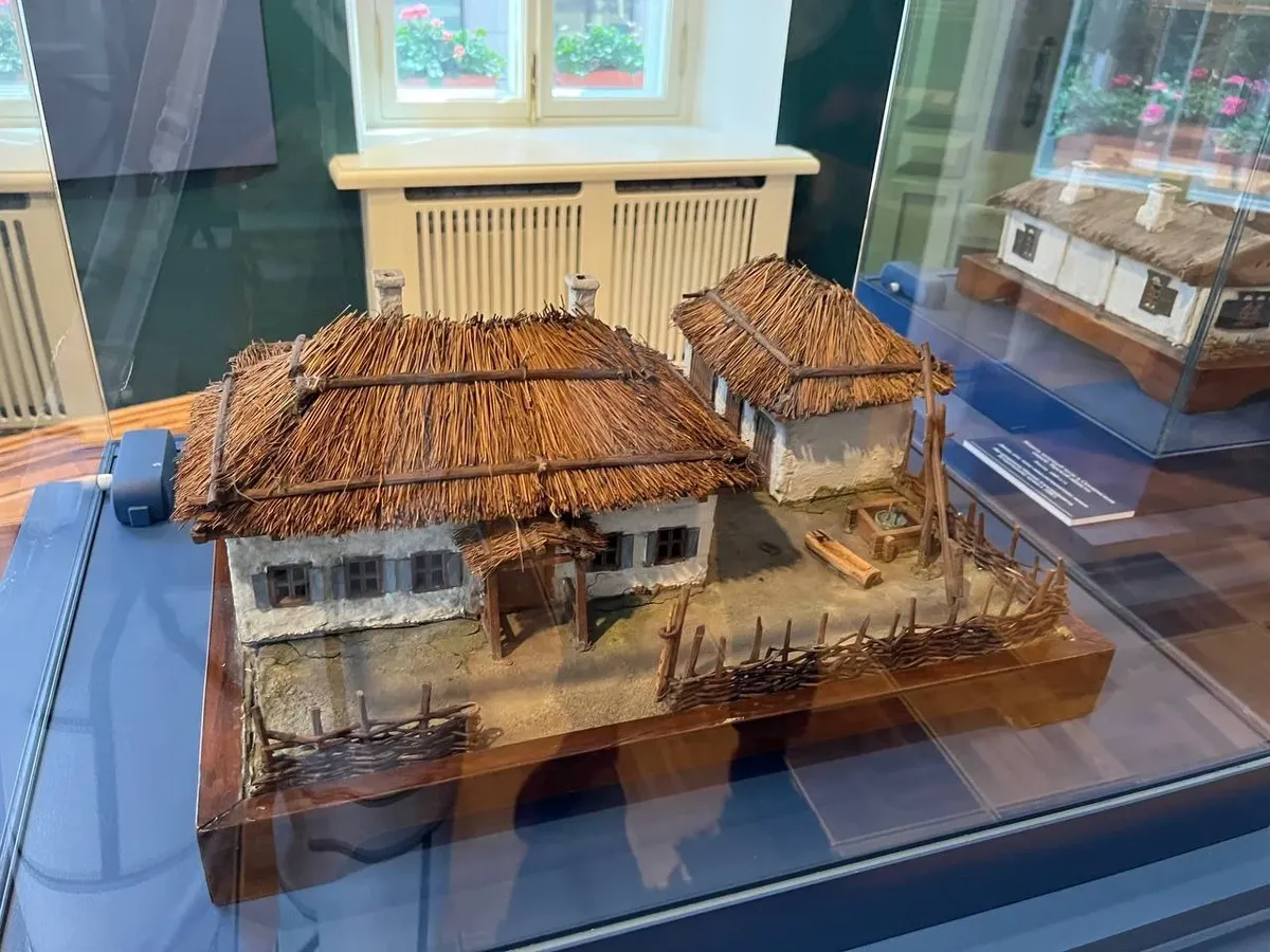 И хотя набор представленных макетов зданий (мазанки двух видов) и предметов (подвесная люлька, чугунный утюг и кованый сундук) плюс-минус отражают реальность (у бабушки они были ровно такими же), существование у казаков реальной жизни в станицах, семей и жен представлено двумя (sic) текстовыми планшетами «Мир казацкой станицы» и «Казачки» в шесть абзацев каждый.