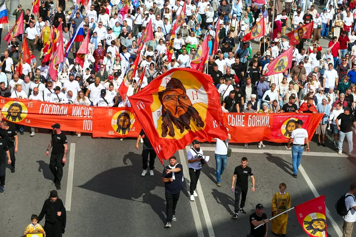 Потом, когда после звона колоколов широкая река народа потечет по набережной, в самом начале колонны будет много, очень много таких: в темном неброском, с короткими стрижками, широкими плечами и выправкой. Они будут идти и идти, временами выкрикивая про то, что они русские и что с ними бог. Над ними будут колыхаться какие-то полотнища, от них будет исходить отчетливо ощутимая энергия силы и власти. Шеренга за шеренгой они будут маршировать как будто не в молитвенном движении и не во имя соборности, а заявляя что-то совсем другое, что-то про то, кто на улицах этого города отныне главный. В какие-то моменты казалось, что вот-вот — и в их руках могут появиться факелы.