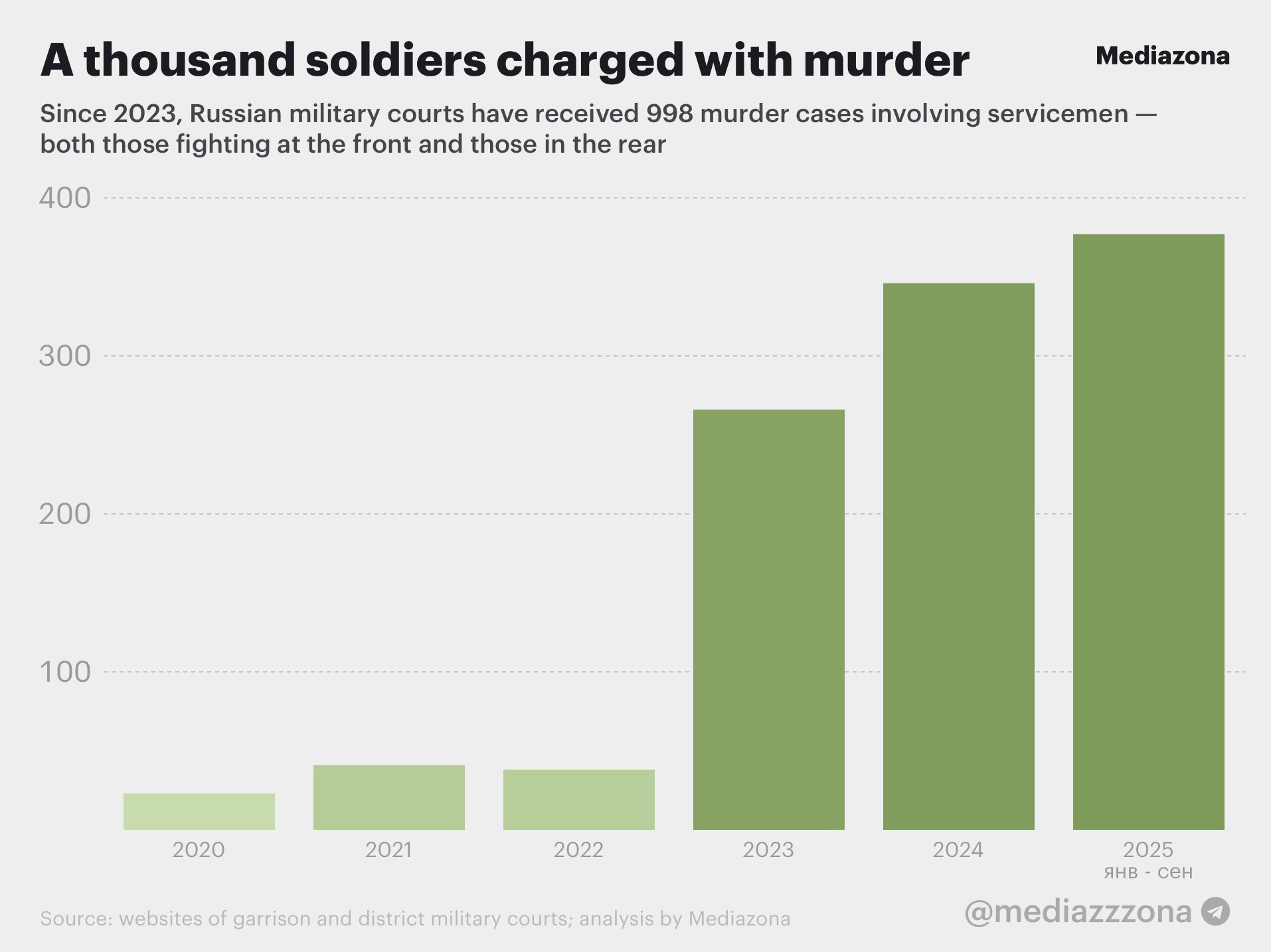 The other casualty count. Mediazona data shows nearly 1,000 Russian soldiers have been charged with murder since the start of Ukraine invasion