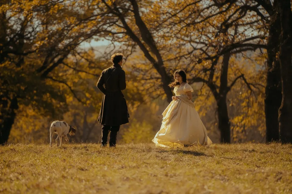 Лермонтов Ильи Озолина лишен книжного романтического ореола. У него высокий с хрипотцой голос, он вообще далек от хрестоматийного образа со школы. В решающей дуэльной сцене в нем столько вдруг детского, почти мальчишеского упрямства и заносчивости. Когда вот-вот он протянет вчерашнему другу руку и… не может. Нелепо, ужасно, фатально. Да и в Николае Мартынове (Евгений Романцов) нет никакого злодейства. Так сложились обстоятельства, его оскорбили при дамах, он обязан как дворянин постоять за себя. Кто поступил бы иначе? Его объятие с Эмилией похоже и на объяснение в любви, и на прощание. Во время показа я думала о Мартынове — майоре из Кавалергардского полка, поехавшего добровольцем на Кавказ, вместе с Лермонтовым учившемся в школе юнкеров. О случайности и закономерности их дружбы, ссор, вражды. Как остановка музыки в доме Верзилиной, из-за чего оскорбительное окончание реплики Лермонтова стало слышно всему залу и послужило поводом для вызова… В фильме нет этой сцены, но в доме Верзилиной играют Шуберта.