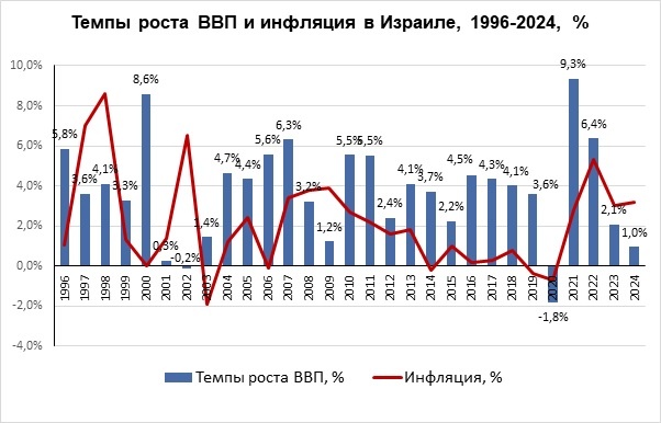 Источники: Центральное статистическое бюро Израиля (2025); рассчитано на основе данных Банка Израиля (2025).