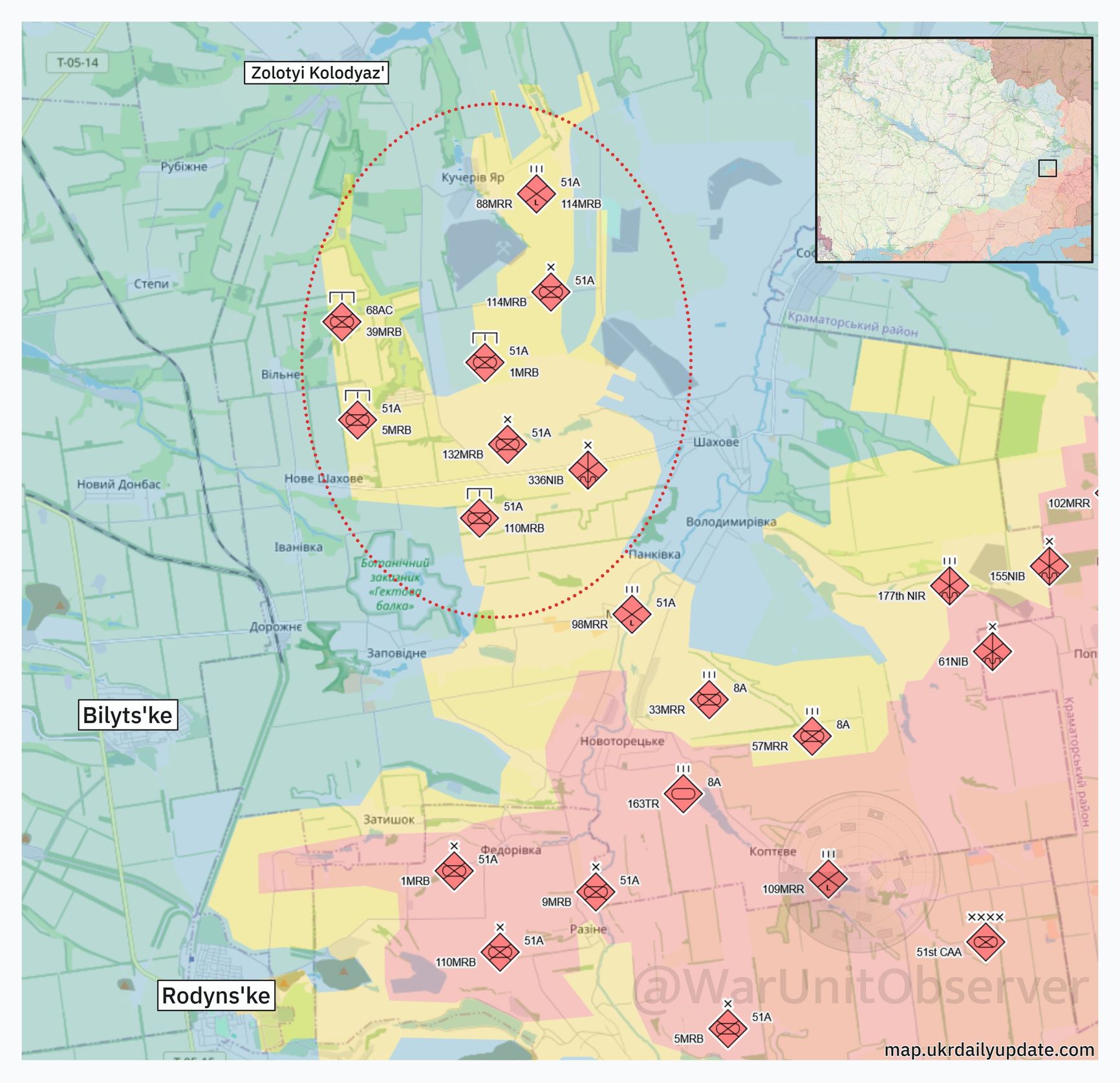 По мнению Машовца, российское командование продолжает придерживаться основного плана операции по окружению и штурму покровско-мирноградской агломерации, о чем свидетельствуют продолжающиеся атаки на Родинское и бои в южной части Покровска. Кроме того, силы 51-й армии пытаются наступать на сам город Доброполье. Угроза тылам этой армии в промежутке между Новоторецким и Разиным устранена после переброски подкреплений и начала контратак, однако при этом сохраняется угроза для перешейка между Заповедным и Панковкой шириной не более 5 км. Также обозреватель отмечает, что с учетом истощения 51-й армии в боях на подступах к Покровску, выделенных на штурм города сил 2-й общевойсковой армии и отдельных подразделений 41-й ОА может не хватить, а задействование для этих целей сконцентрированной в этом районе российской группировки морской пехоты нарушит планы наступления на Константиновку.