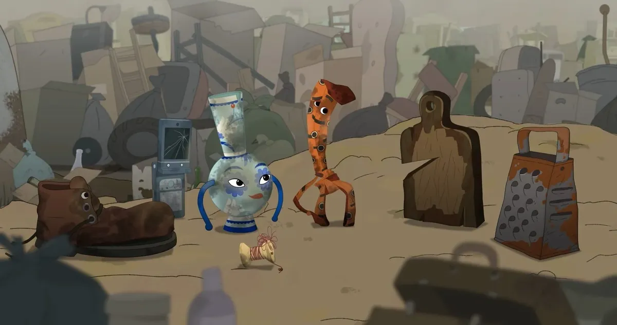 А вот и главные герои. В одной компании (на одной свалке) волей злодейки судьбы оказываются: некогда кутюровский брендовый Мак, изящная, хотя и надтреснутая фарфоровая вазочка Лили, баллон освежителя воздуха Бриз, работяга-ботинок с приклеенной к подошве жвачкой, треснутый кнопочный телефон Дедушка Лектор, бесконечно цитирующий классиков, и розововолосая малышка — катушка ниток.