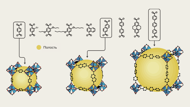 Ягхи показал, как именно, варьируя длину и тип линкеров, соединяющих узловые элементы, ученые могут делать молекулярные поры внутри вещества крупнее или мельче. А значит — как можно управлять тем, какие молекулы могут проникать в эти поры и храниться в толще материала.