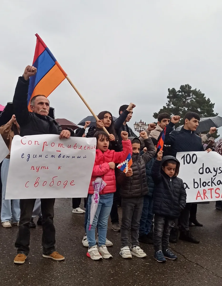 В конце декабря 2022 года прошла первая крупная акция: около 6 тысяч человек, включая женщин и детей, отправились к месту перекрытия «коридора». Шествие с плакатами на разных языках, содержащими призывы разблокировать дорогу, остановили российские миротворцы: «Пропустить мы вас не можем, но передадим ваши требования командованию». Через два дня группа жителей Степанакерта вышла к базе РМК с плакатами «Мы вам поверили». Позже еще не раз люди ходили к этой базе — разумеется, безрезультатно.