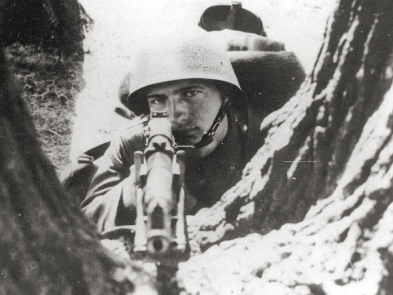 Польский солдат с автоматической винтовкой Browning wz. 28 на огневой позиции