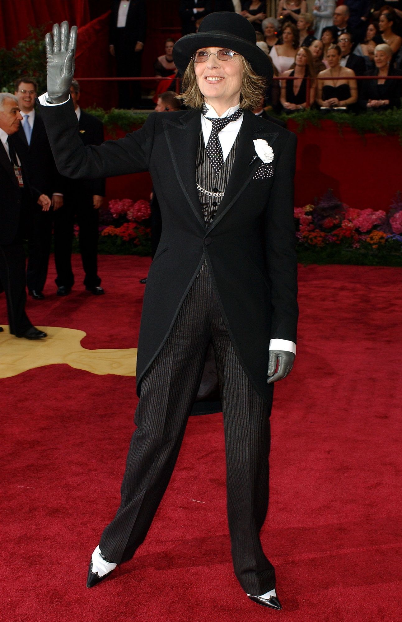 Невозможно пройти и мимо осознанного выбора имиджа, сделавшего Китон иконой стиля в 1970-х и позволившего ей оставаться таковой всю свою жизнь. Она первой стала носить мужские водолазки, пиджаки и галстуки. А еще отказывалась скрывать седину или делать пластические операции. Трудно не восхититься последовательностью такого поведения и презрением к моде или конъюнктуре.