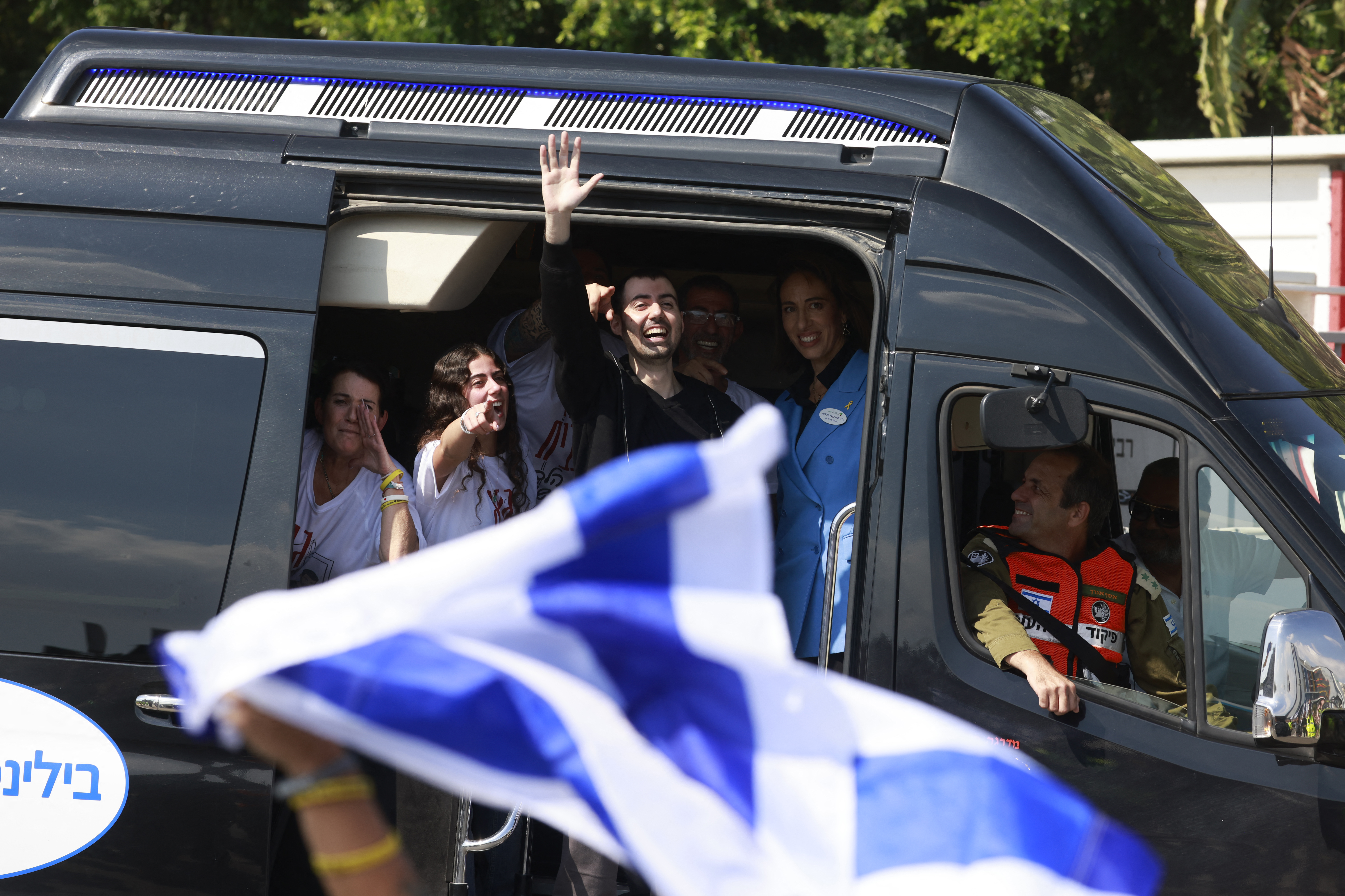 Зив Берман, похищенный ХАМАС 7 октября 2023 года и освобожденный 13 октября 2025 года, в Рамат-Гане, Израиль.