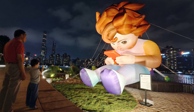 «Мальчик с мобильным телефоном» — мембранная фигура на воздушной подушке, разработанная для Шанхайского международного фестиваля