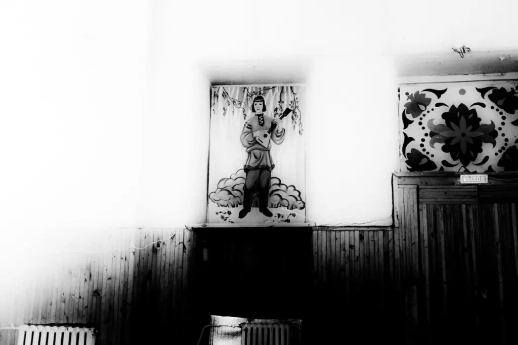Дом культуры в селе Нерль на первый взгляд ничем не примечателен. Здание продолговатое, белое, типовое, с колоннами. Из-под крыш выпархивают голуби. Из травы виднеется заросшая могилка, надпись на надгробии не разобрать. За зданием — покосившийся дровник.