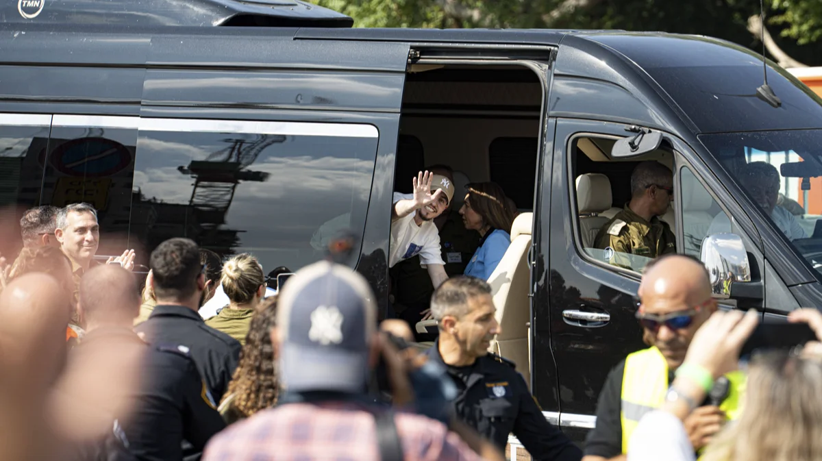 Освобождённый из плена Эйтан Мор прибывает в больницу Билинсон в Израиле 13 октября 2025 года. Фото: Ori Aviram / Middle East Images / Sipa / Scanpix / LETA