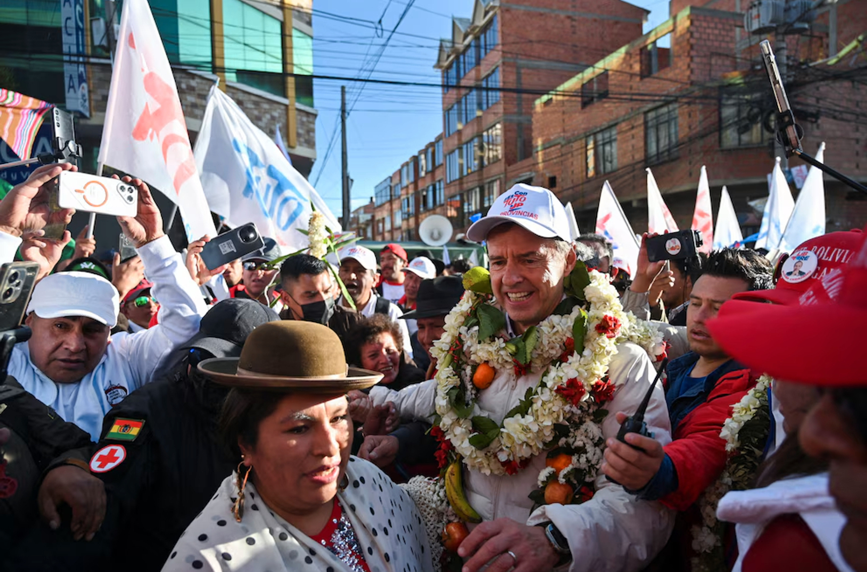 Кандидат в президенты Хорхе Кирога со своими сторонниками