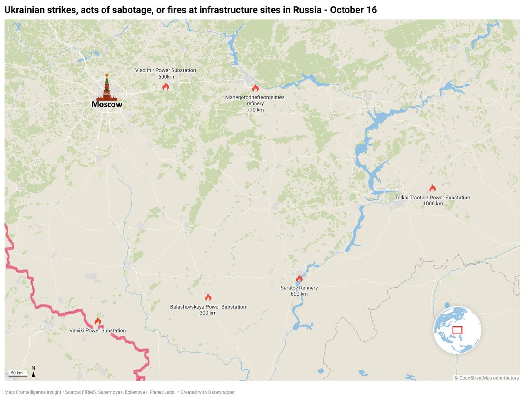 О главных событиях войны 16 октября — в предыдущей сводке: Российские командиры ведут «бездарную погоню за медалями» под Добропольем, налеты на НПЗ в Саратове и Кстово. Что происходит на фронте