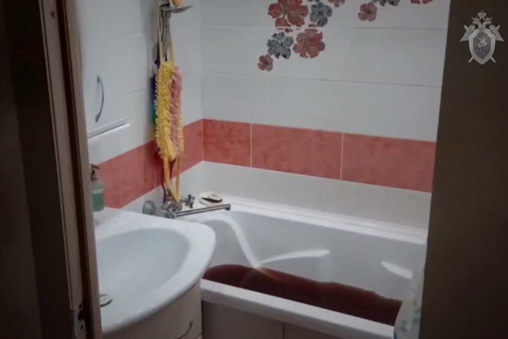 Ванная в квартире, где произошло убийство. Кадр: СК РФ