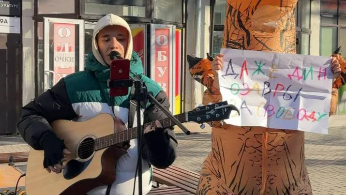 The busker had come out in central Yekaterinburg several times in the past few days and performed songs by Monetochka and the group Pornofilmy, as well as Noize MC, in support of Loginova and musicians from the band Stoptime who were arrested alongside her in St. Petersburg last week.