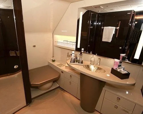 Первый из них — Airbus A318-112CJ Elite, который до 2019 года летел с бортовым номером M-HHHH острова Мэн, затем поменял прописку на Сан-Марино и стал T7-HHHH, а с 2022 года по понятным причинам перешел в российскую юрисдикцию с номером RA-73888. На борту расположены гостиная, обеденная зона и личный кабинет, который превращается в спальню.
