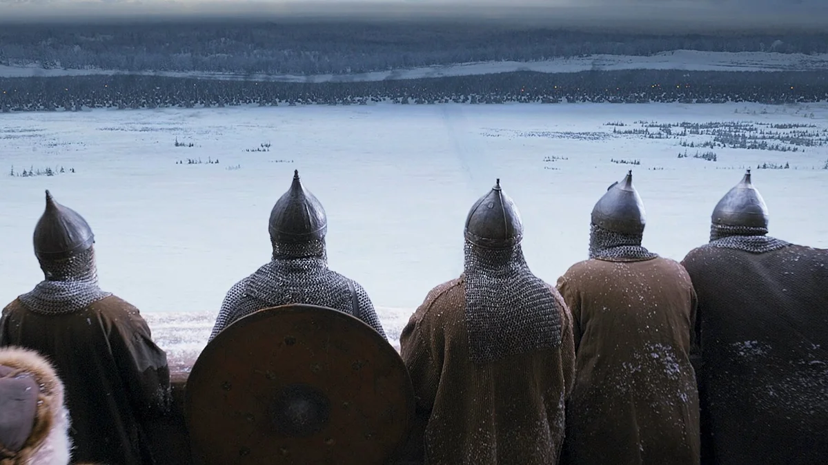 Ну и, конечно, всеобщая мобилизация, в которой особое место занимает «криминальная» часть населения: их искупление в глазах общества возможно лишь через жертву на поле боя. Отдельного внимания заслуживает лексика юного князя, который на предложение укрыться отвечает: «Я князь, а не крыса». Подобная терминология ближе к криминальному культу позднего СССР, перешедшему в эстетику 90-х, чем к средневековому славянскому языку. Все эти образы органично вписываются в нынешний политический ландшафт. Можно было бы предположить авторскую интерпретацию или случайное сочетание элементов, если бы не финальный титр — «Памяти павших при защите земли русской во все времена», выдающую связь фильма с актуальными событиями уже Российской Федерации.