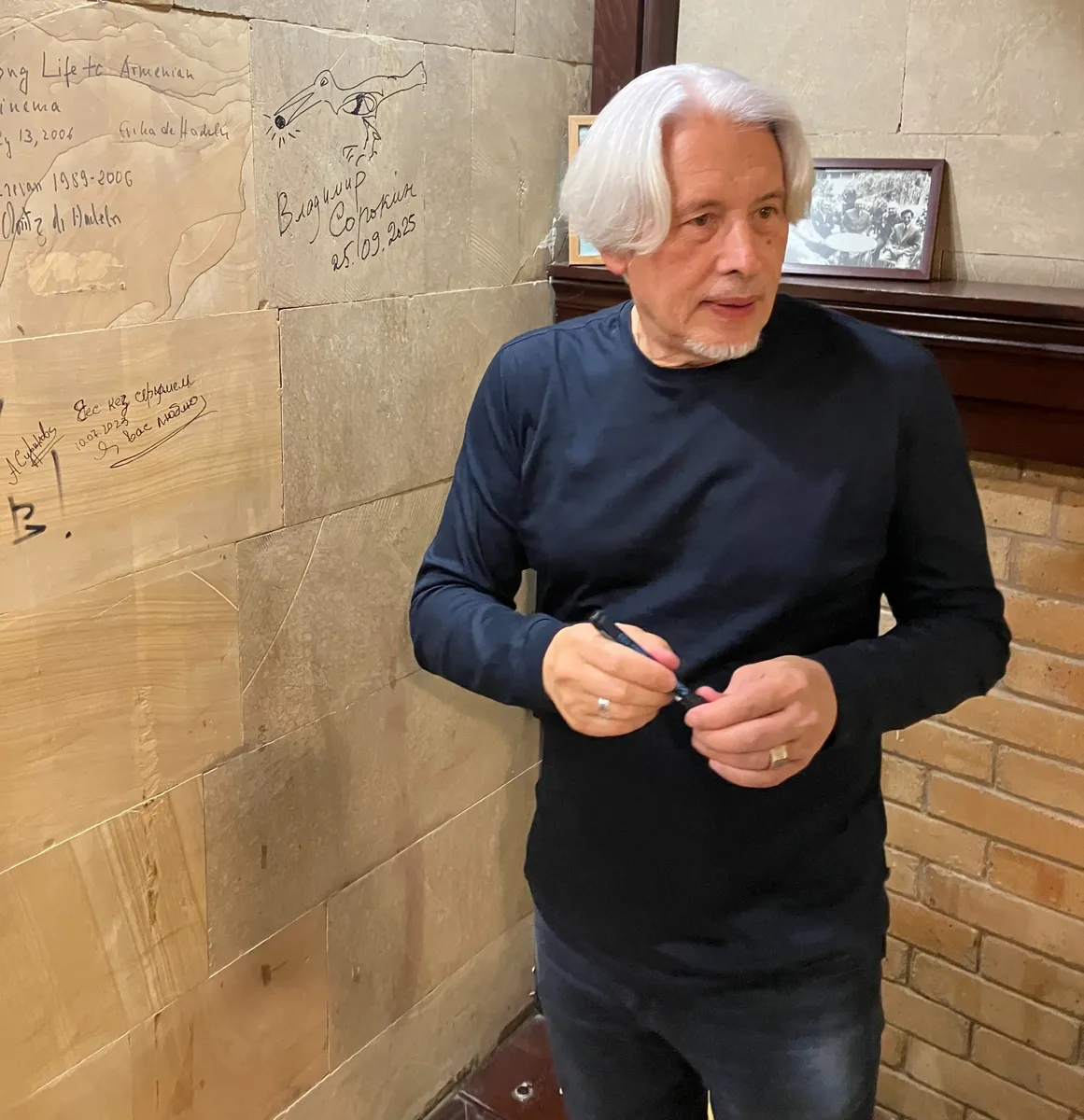 В конце сентября на презентацию новой книги «Сказка» в Ереван прилетел российский писатель Владимир Сорокин. Это первый его визит в Армению, и Сорокин попросил не устраивать ему никаких интервью, а показать Ереван. За четыре дня мы с организаторами придумали, как влюбить писателя в страну, которую мы, его читатели, выбрали для жизни. Разговаривали просто так, одели, кормили, развлекали, договорились об издании книги на армянском языке, обсуждали русскую философию и обыграли в шахматы.