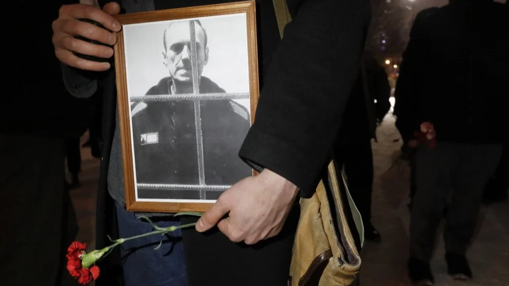 People lay flowers and light candles next to the photo of Russian late opposition leader Alexey Navalny during a vigil following his death, near the memorial to political prisoners in St. Petersburg, Russia, 16 February 2024. Photo: EPA/ANATOLY MALTSEV