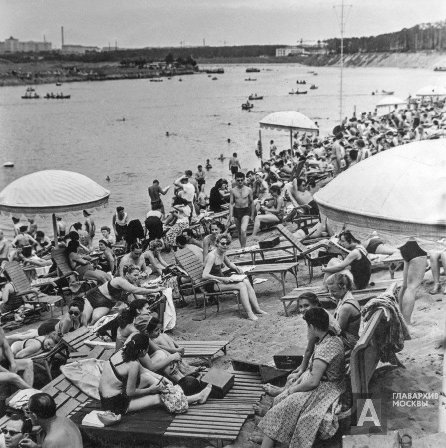 Отечественные руководители любили хвастаться Серебряным бором перед иностранными гостями. Сюда привозили звездных фотографов, здесь по Москве-реке возили в 1972 году президента США Ричарда Никсона. Гостям показывали красивую, но ложную картинку — простые советские люди отдыхают на природе в каких-то минутах езды от Кремля. На деле и тогда и теперь Серебряный бор делит всех москвичей на простых и не очень. — Фото: Пляж в Серебряном бору, 1958 года. Источник: Главархив Москвы/onopenko.livejournal.com