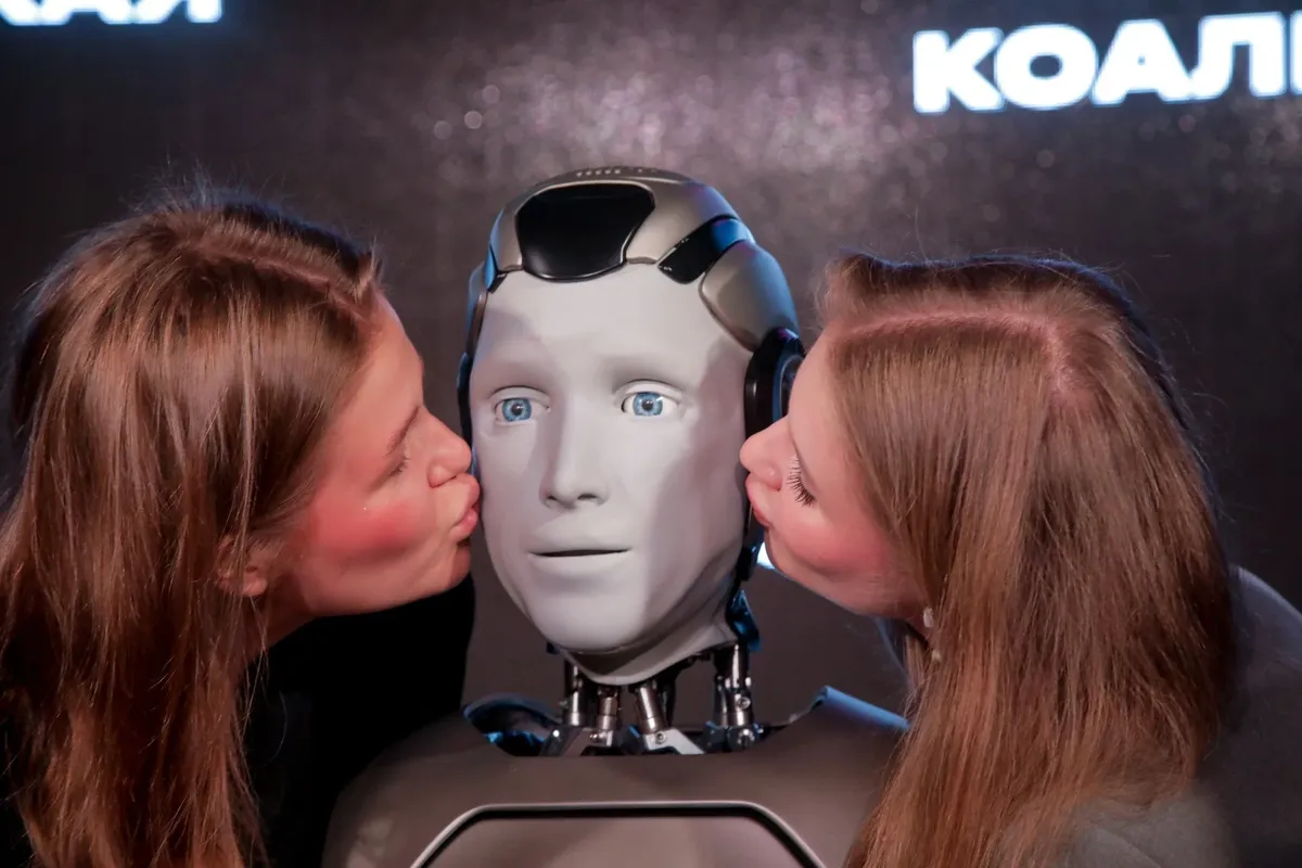 Ладно, хватит философий и рефлексий — обратимся к примерам. Вы же наверняка видели презентацию первого отечественного антропоморфного робота с искусственным интеллектом. Его зовут Aidol. Или звали? Как он там? Жив ли? Что говорит его интеллект? Имя робота — это же такая игра слов — он одновременно и Идол, и AI, то есть ИИ. Но его могли звать и Ваня, и Вася, и Вова. Это только кажется, что презентация не удалась. Напротив — робот показал себя весьма аутентичным и абсолютно антропоморфным.