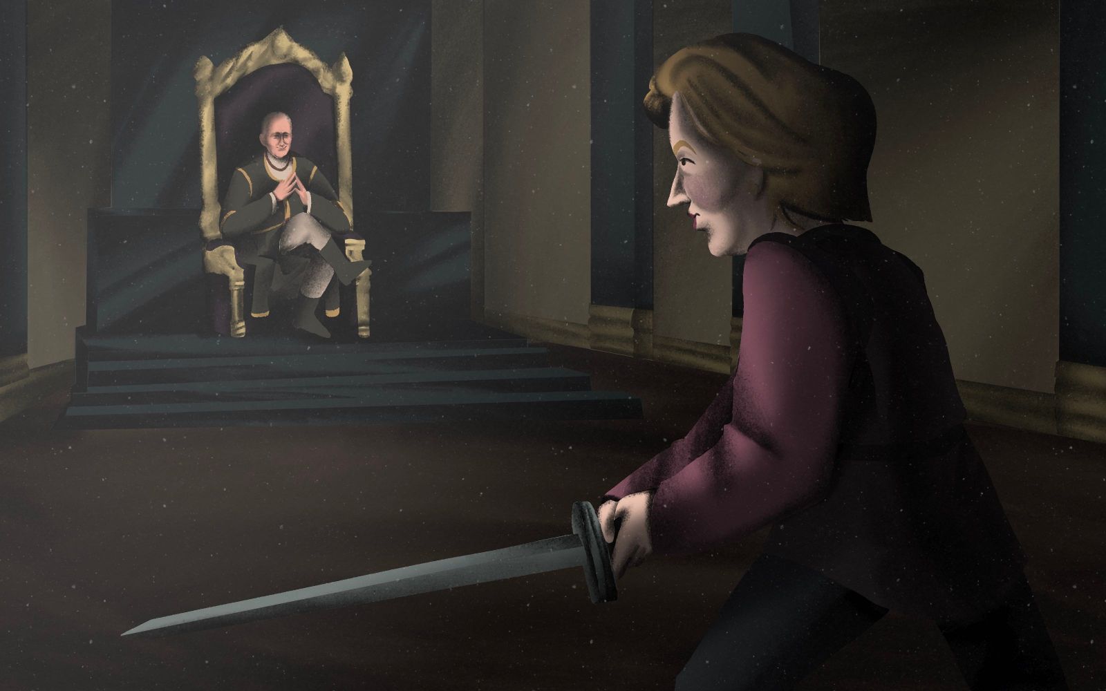 Главная героиня, Mystic Hillary Diane, регент Аквилона, — конечно, это фэнтезийная Хиллари Клинтон, — сражается с Лордом Владимиром и погибает в финале, спасая мир. Хиллари становится мученицей, вокруг ее гибели образуется государственный культ, а «тень Владимира» продолжает шептать из-под земли, предвещая возвращение.
