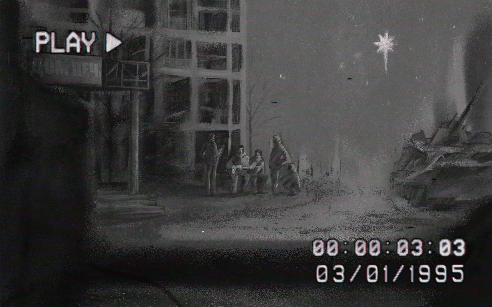 Оказавшись в разрушенном Грозном, музыкант попал внутрь той реальности, которая еще вчера казалась ему чем-то невозможным. На камеру он зафиксировал не типичный сюжет военной хроники, которые часто показывали по телевизору, а лица обычных солдат-срочников, не знающих, почему они оказались здесь; разрушенные дворы домов, где в это время должны были встречать Рождество; обрывочные фразы военных, которые больше никогда не вернутся домой.
