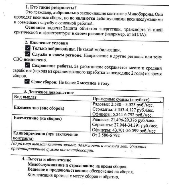 – Наши [кадровики] даже консультироваться с юристами не стали. Тупо вышли и раздали нам листовки с "предложением" защищать объекты инфраструктуры Тюмени от беспилотников. Формально предлагают "добровольно заключить контракт с Минобороны РФ" для целей "защиты объектов энергетики, транспорта и иной критической инфраструктуры". От беспилотников, в основном, – говорит Сергей, работник предприятия "Пластконструкции". – Причем наврали нам, что, мол, если не хотите "записываться" в резервисты – надо обязательно сходить в военкомат, чтобы "письменно отказаться от предложения". Мы так подумали – повесток-то именных не было, и плюнули. По-моему, никто [в военкомат] в итоге не ходил.