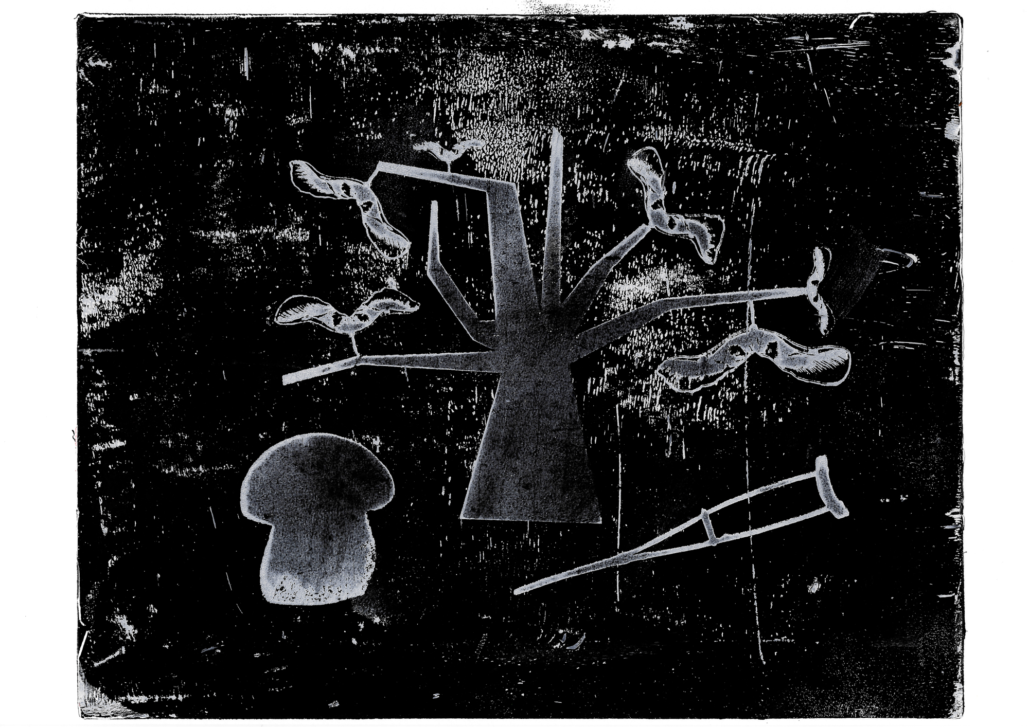 Пришлось искать способы помочь ему — и себе. Этот год я нахожусь на границе между видимой реальностью и вымыслом. Чтобы сохранить контакт с дедом — а также остатки своей психики — я начал делать заметки: фотографировать наш быт, записывать разговоры, рисовать с ним вместе. Дедушка также очень любит рассказывать истории — на их основе я начал делать коллажи и монотипию. Из таких заметок и сложилась эта история.