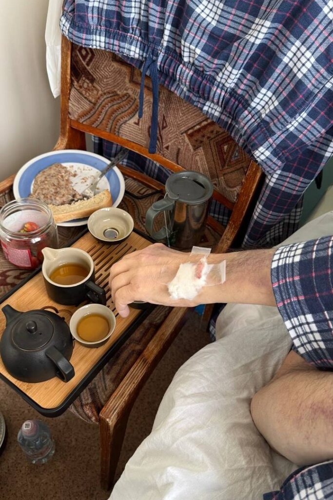 Жизнь в больнице для папы была невыносимой. Ему было сложно нагибаться, садиться и передвигаться, а туалет в больнице не был оборудован поручнями. Папа просился домой и жаловался на соседа, который из-за избытка токсинов в крови не понимал, что делает, и творил всякую дичь. Например, ходил в туалет посреди палаты или садился папе ночью на больной живот.