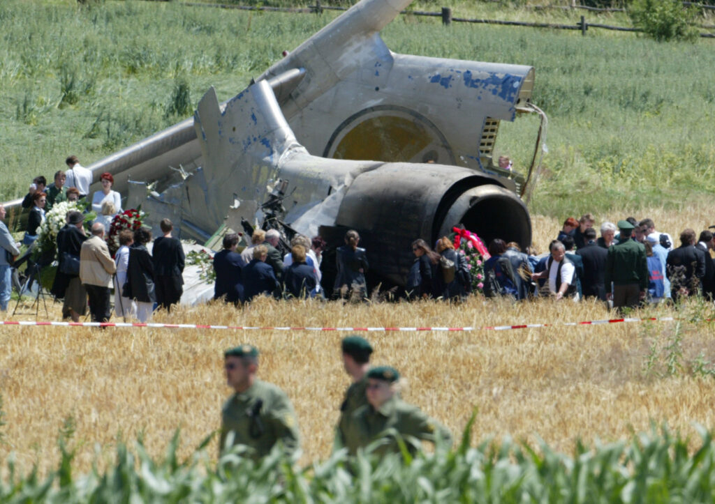 Спустя около 30 секунд командир увидел в небе Boeing. Он дернул штурвал. Было поздно. Boeing врезался в ТУ-154М почти под прямым углом. Пассажирский самолет развалился в воздухе на четыре части. Оба судна упали на землю на юге Германии, возле Боденского озера, среди лесов и полей.