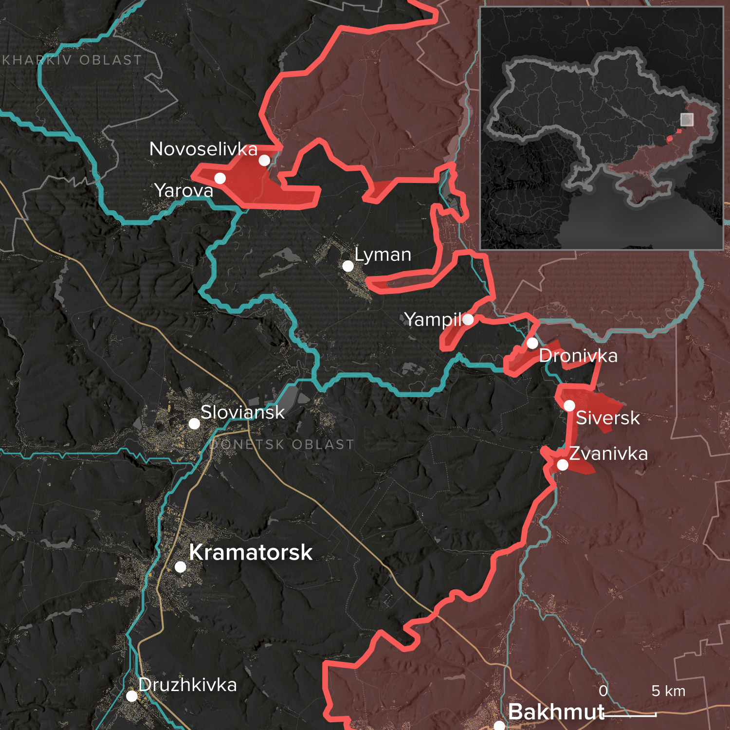 Russian forces are attempting to break through near Yarova, Drobysheve, and Yampil to reach the Siverskyi Donets River, cut off supplies to Lyman, and link up with forces advancing from the opposite bank near Siversk.