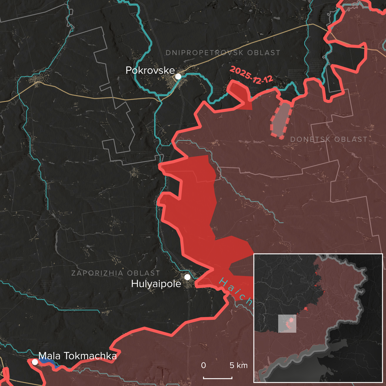 Operationally, Russian attacks from Pokrovsk’s northern outskirts toward Ukrainian supply lines and rear positions between Hryshyne and Rodynske (which Russia has partially captured) are more significant. Ukrainian sources report that all routes in and out of Myrnohrad for Ukrainian troops are now a “gray zone.”