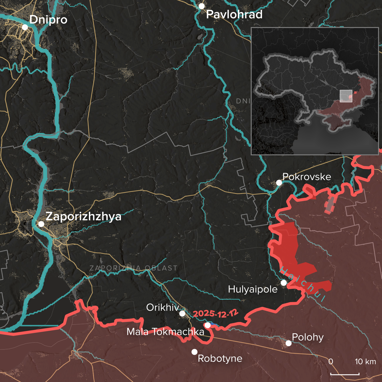 Russian forces are also attempting to capture Hryshyne, the main Ukrainian logistics hub in the area. Fighting is ongoing on the village’s southeastern outskirts, while Russian troops are advancing from Kotlyne in the south.